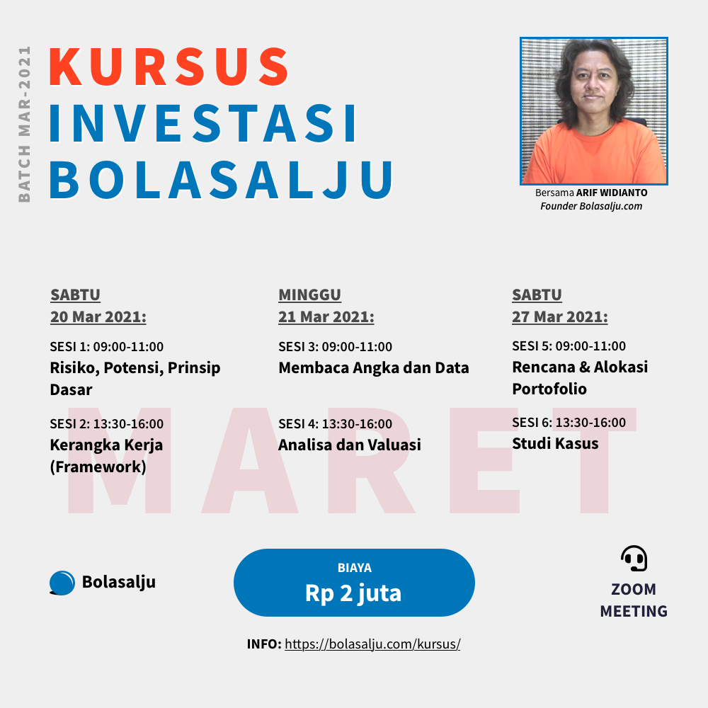 Jadwal Kursus Investasi Bolasalju (Kelas Zoom) Batch Mar-2021: